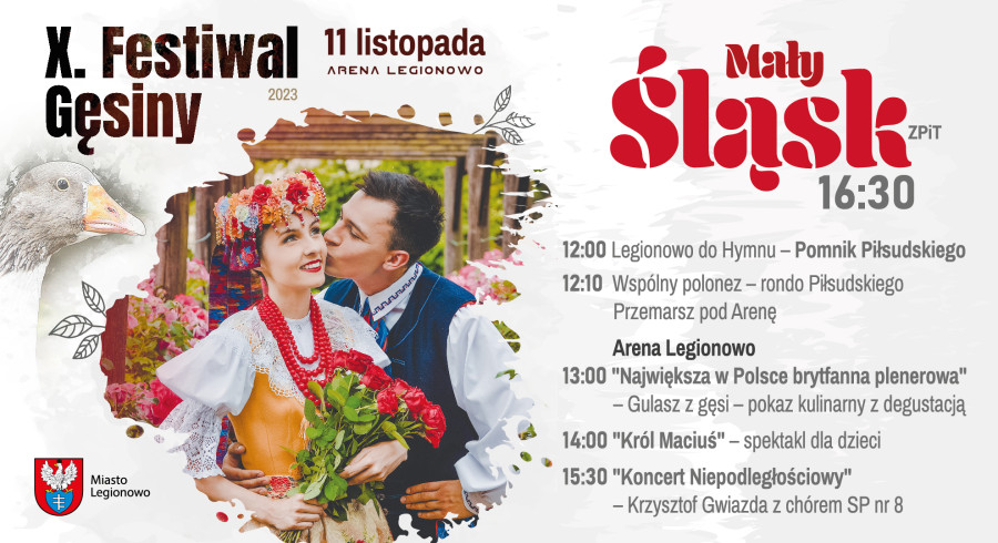 Tegoroczne uroczystości związane z obchodzonym 11 listopada Świętem Niepodległości rozpoczną się o godz. 12:00 wspólnym odśpiewaniem Hymnu Narodowego. Dziesięć minut później rozpocznie się przemarsz z Ronda Piłsudskiego do gmachu Areny Legionowo, gdzie odbędzie się X Festiwal Gęsiny.