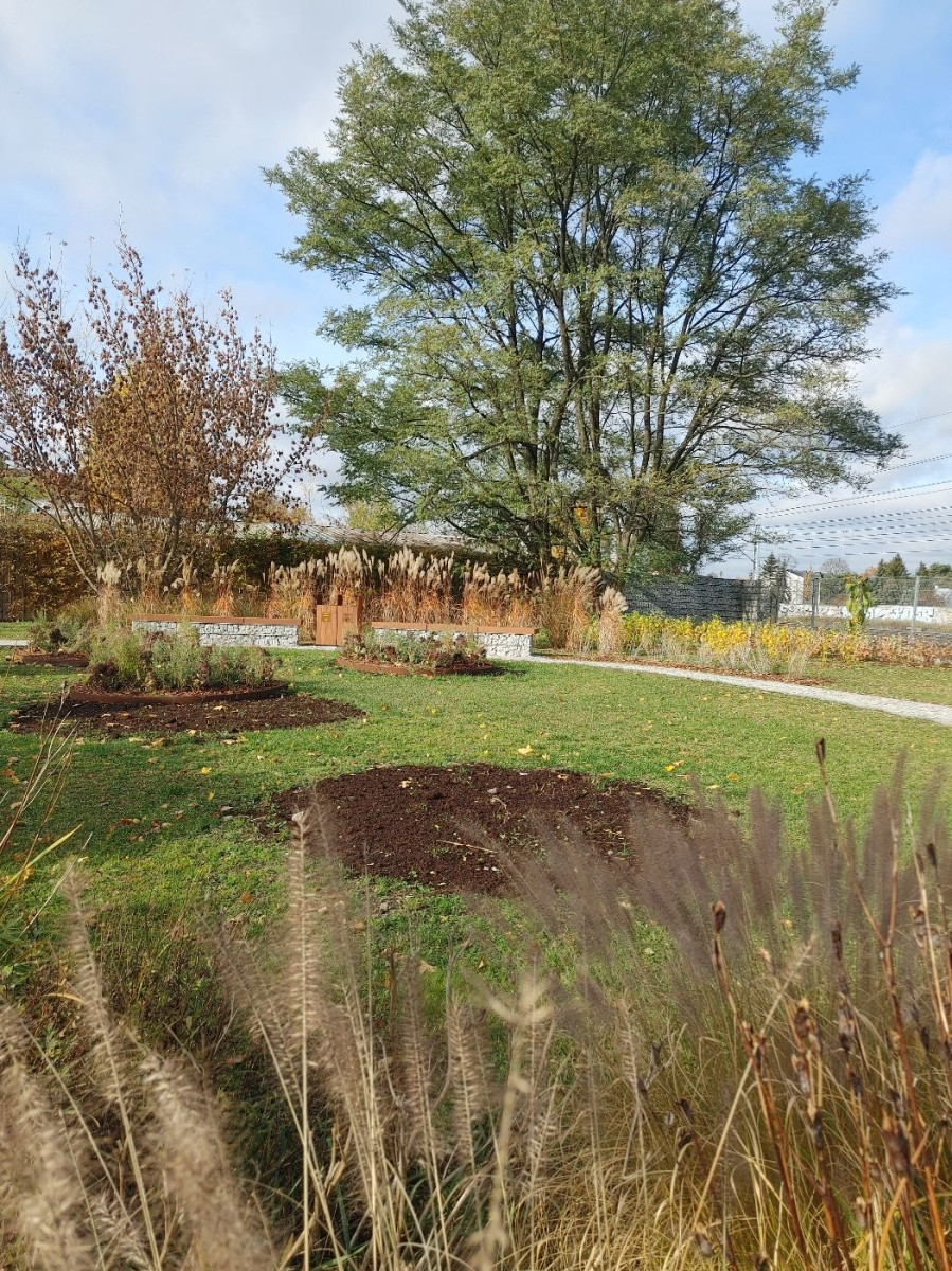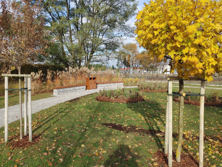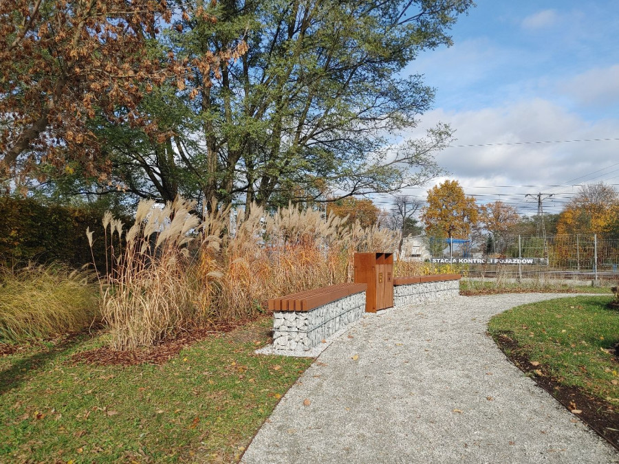 Ścieżkę wykonano w systemie wielowarstwowym, z wierzchnią warstwą z drobnoziarnistego grysu. Całość dopełniają elementy z kortenu – charakterystycznej stali o rdzawym odcieniu, doskonale komponującej się z jesienną kolorystyką parku.W przestrzeni pojawiły się również ozdobne rabaty w kształcie okręgów, wypełnione wieloletnimi roślinami, które będą kwitły w różnych okresach wegetacji.