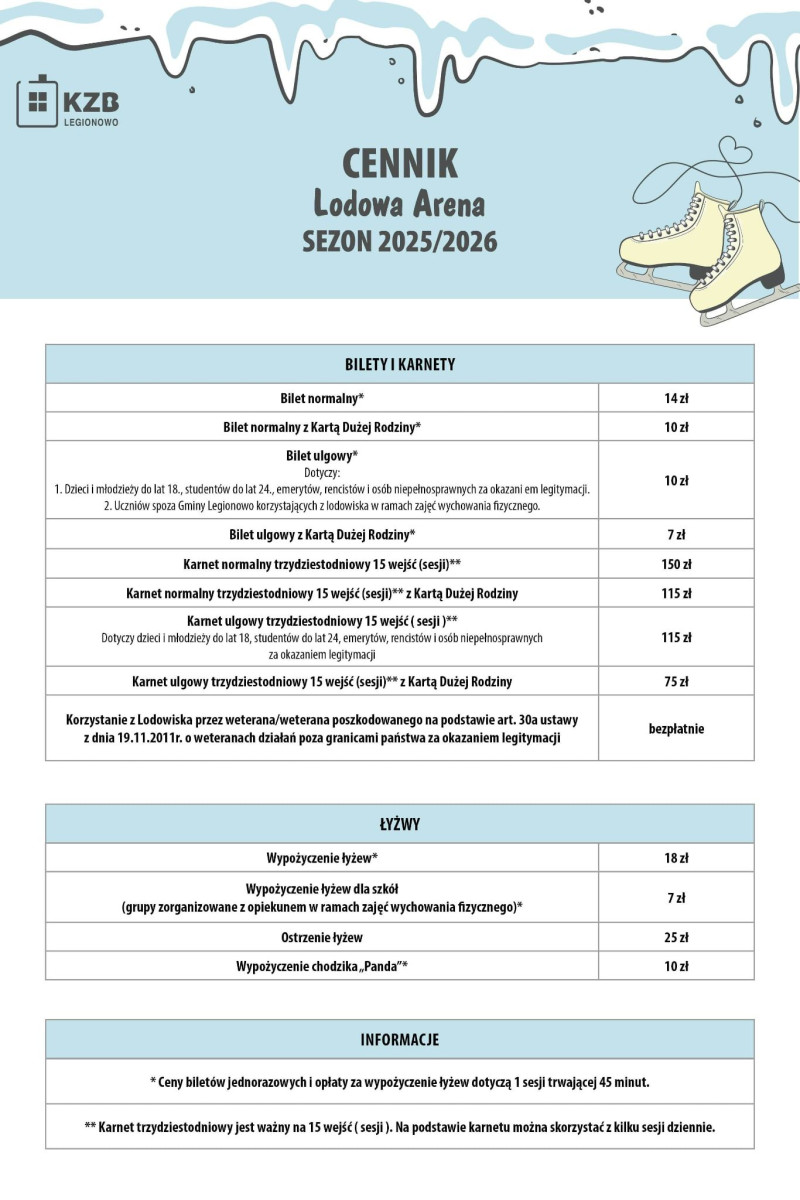 Wraz z informacją o otwarciu Lodowej Areny poznaliśmy także tegoroczny cennik. Prezentujemy go poniżej.