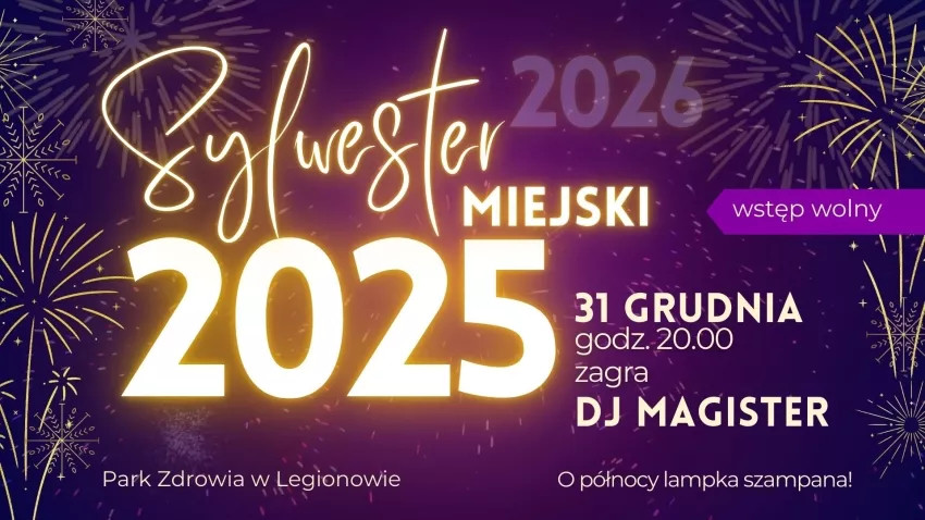 Z kolei w środę, 31 grudnia, w legionowskim Parku Zdrowia odbędzie się zabawa sylwestrowa. Jej początek przewidziano na godz. 20:00. Muzykę do tańca zapewni DJ Magister. O północy tradycyjna lampka szampana.