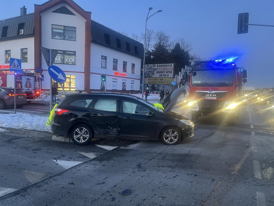 Zderzenie dwóch aut na skrzyżowaniu Warszawskiej i Sowińskiego w Legionowie. Fot. KP PSP Legionowo
