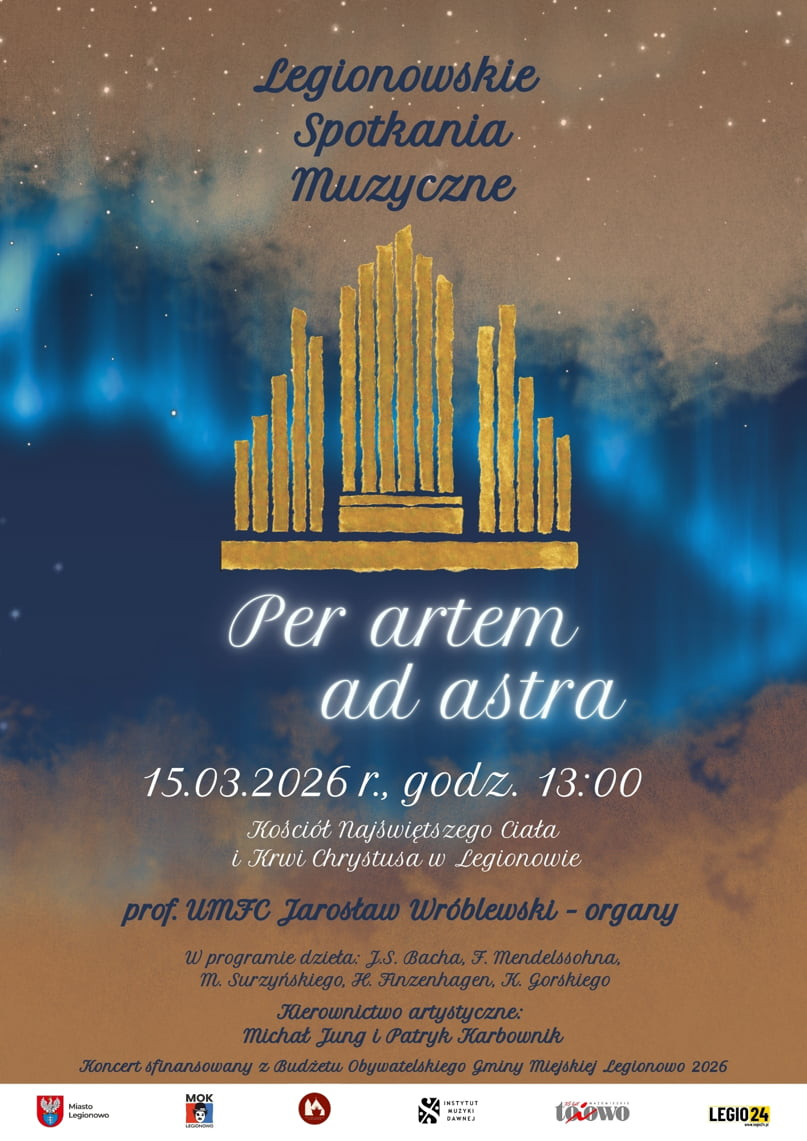 „Legionowskie spotkania muzyczne – Per artem ad astra” obejmują sześć koncertów organowych zaplanowanych na marzec, kwiecień, wrzesień, październik, listopad i grudzień oraz trzy koncerty plenerowe latem na placu przykościelnym.