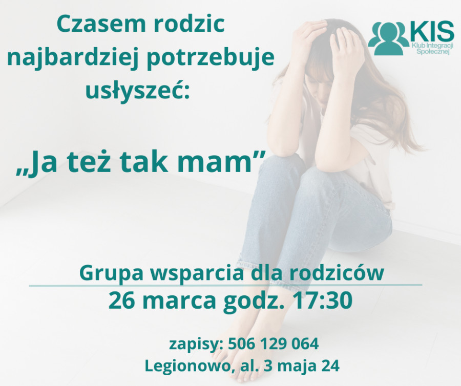 Pierwsze spotkanie grupy wsparcia dla rodziców odbędzie się w czwartek, 26 marca 2026 roku, o godz. 17:30, w Ośrodku Kuratorskim nr 1 przy Sądzie Rejonowym w Legionowie, Al. 3-go Maja 24.