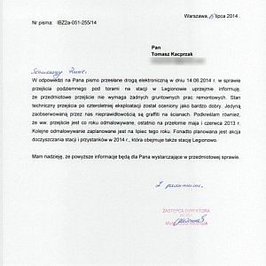 Z inicjatywy Zastępcy Prezydenta Miasta Legionowo Piotra Zadrożnego oraz komendanta SM Ryszarda Gawkowskiego na miejsce ściągnięto kierownika Sekcji Higieny Komunalnej legionowskiego sanepidu, panią Sylwię Patejuk. W wyniku interwencji w piątek (18.07) od godziny 9:00 pracownicy PKP wzięli się do pracy. Jak informuje komendant Gawkowski, we wtorek (22.07) w godzinach rannych nastąpi rekontrola - służby porządkowe sprawdzą, czy przejście podziemne jest utrzymane przez PKP we właściwym porządku.