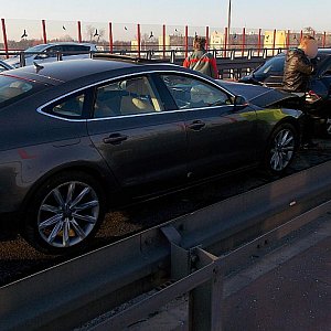 We wtorek (17.03) około godz. 16:20 na legionowskim wiadukcie (w kierunku do Zegrza) doszło do zderzenia czterech samochodów osobowych. Jak informuje nasz reporter, który był obecny na miejscu zdarzenia, żaden z uczestników stłuczki nie odniósł poważniejszych obrażeń.