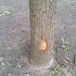 - dlaczego wykonawca przy prowadzeniu prac nie wykonywał ich starannie, bo nie zabezpieczył drzew przed uszkodzeniem. Takich drzew jest co najmniej kilkanaście. Zabezpieczanie pni drzew jest niejako standardem - tu nie dokonano tego i efekty są fatalne.