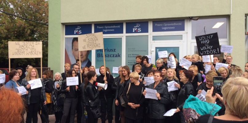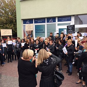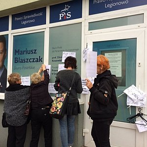 Panie, które przeszły ulicami Legionowa nie ominęły także lokalnego biura rządzącej partii Prawo i Sprawiedliwość, której posłowie popierają zaostrzenie przepisów, godzących w prawa kobiet. - Zostawiamy tu serdeczne i ciepłe pozdrowienia dla naszego reprezentanta w sejmie, ministra Mariusza Błaszczaka - mówią zgodnie mieszkanki stolicy powiatu legionowskiego.
