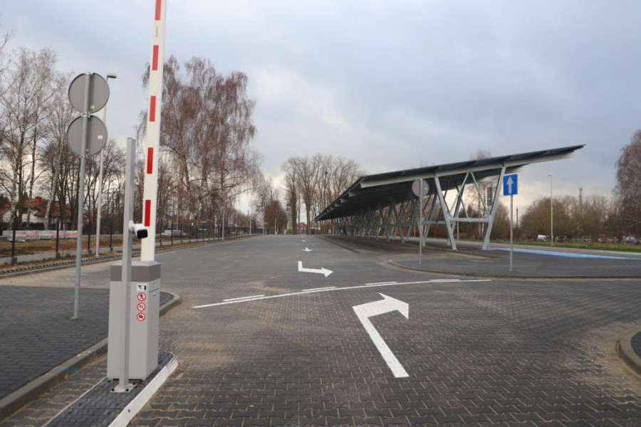 Przy wjeździe na parking znajduje się automatyczny szlaban, a przy stanowisku do ładowania samochodów elektrycznych – kasa samoobsługowa.