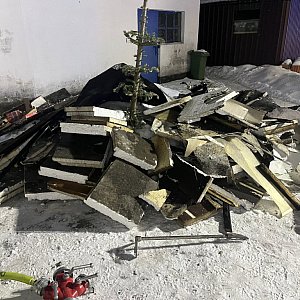 Bezpośrednią przyczyną pożaru poszycia dachowego w budynku gospodarczym był pożar sadzy w kominie. Strażacy, po odnalezieniu źródła ognia, ugasili go za pomocą wody. Następnie rozebrano część podwieszanego sufitu i przelano krokwie dachowe, aby zlikwidować zarzewia ognia.