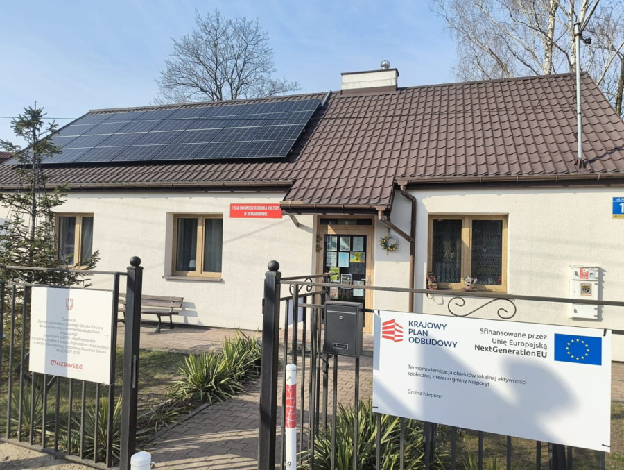 Jak informuje Urząd Gminy Nieporęt, w ramach inwestycji we wszystkich trzech budynkach filii GOK-u wymieniono stolarkę okienną oraz zainstalowano systemy fotowoltaiczne z magazynami energii i automatyką sterującą. Dodatkowo w dwóch lokalizacjach przeprowadzono prace związane z dociepleniem ścian zewnętrznych oraz odnowiono elewację.