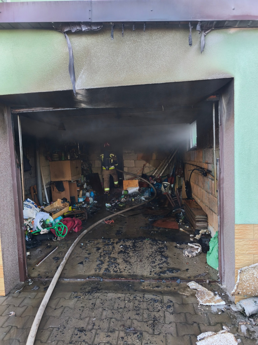 W chwili przyjazdu pierwszych zastępów straży pożarnej w garażu, będącym przybudówką do budynku jednorodzinnego, panowało silne zadymienie. Uniemożliwiało ono zlokalizowanie źródła ognia. Ostatecznie okazało się, że ogień pojawił się w kotłowni, która znajdowała się na tyłach budynku.