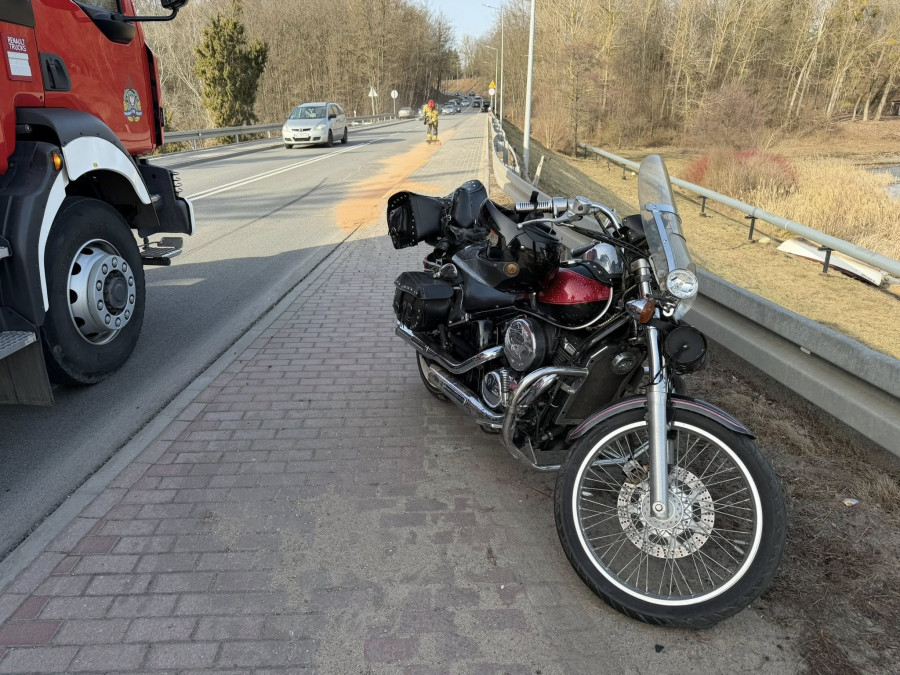 W wyniku gwałtownego hamowania, motocykl przewrócił się na jezdnię. Kierujący nim mężczyzna doznał nieznacznych obrażeń ciała i po przebadaniu przez ratowników medycznych, pozostał na miejscu zdarzenia.