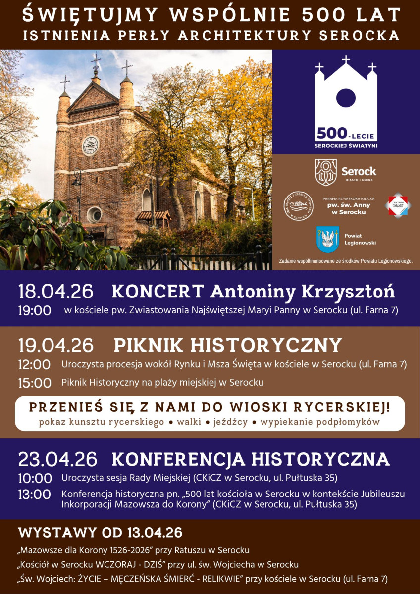 Kulminacją będzie msza święta pod przewodnictwem biskupa Szymona Stułkowskiego. Jak podkreślają urzędnicy, wydarzenie ma „charakter symboliczny i historyczny” – to nie tylko liturgia, ale również wspólne przeżywanie dziedzictwa miejsca, które od pięciu wieków towarzyszy mieszkańcom Serocka.