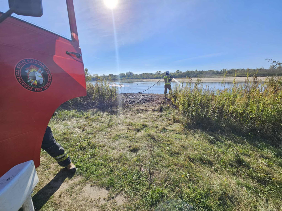 – Po przybyciu na miejsce, w trudno dostępnym terenie w rejonie łowiska, strażacy zastali całkowicie rozwinięty pożar skutera. Nasze działania polegały na zabezpieczeniu miejsca zdarzenia i dogaszeniu pojazdu za pomocą proszku gaśniczego