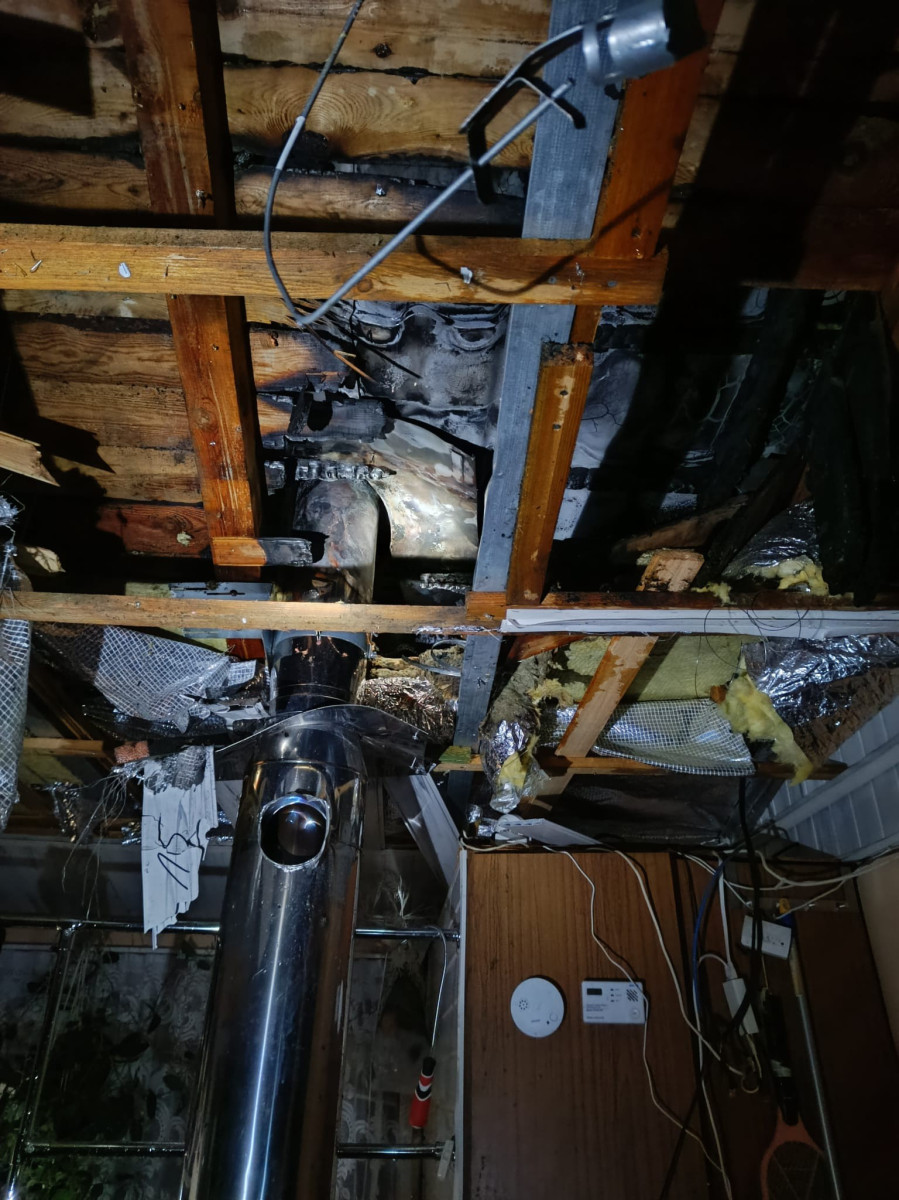 Po przybyciu na miejsce służby potwierdziły pożar poddasza. Strażacy podali kilka prądów wody w natarciu na płonącą konstrukcję dachu. Wcześniej pracownicy pogotowia energetycznego odłączyli zasilanie w budynku. Ogień objął około 10 m² poddasza, które zostało częściowo rozebrane w celu dogaszenia nadpalonych elementów.