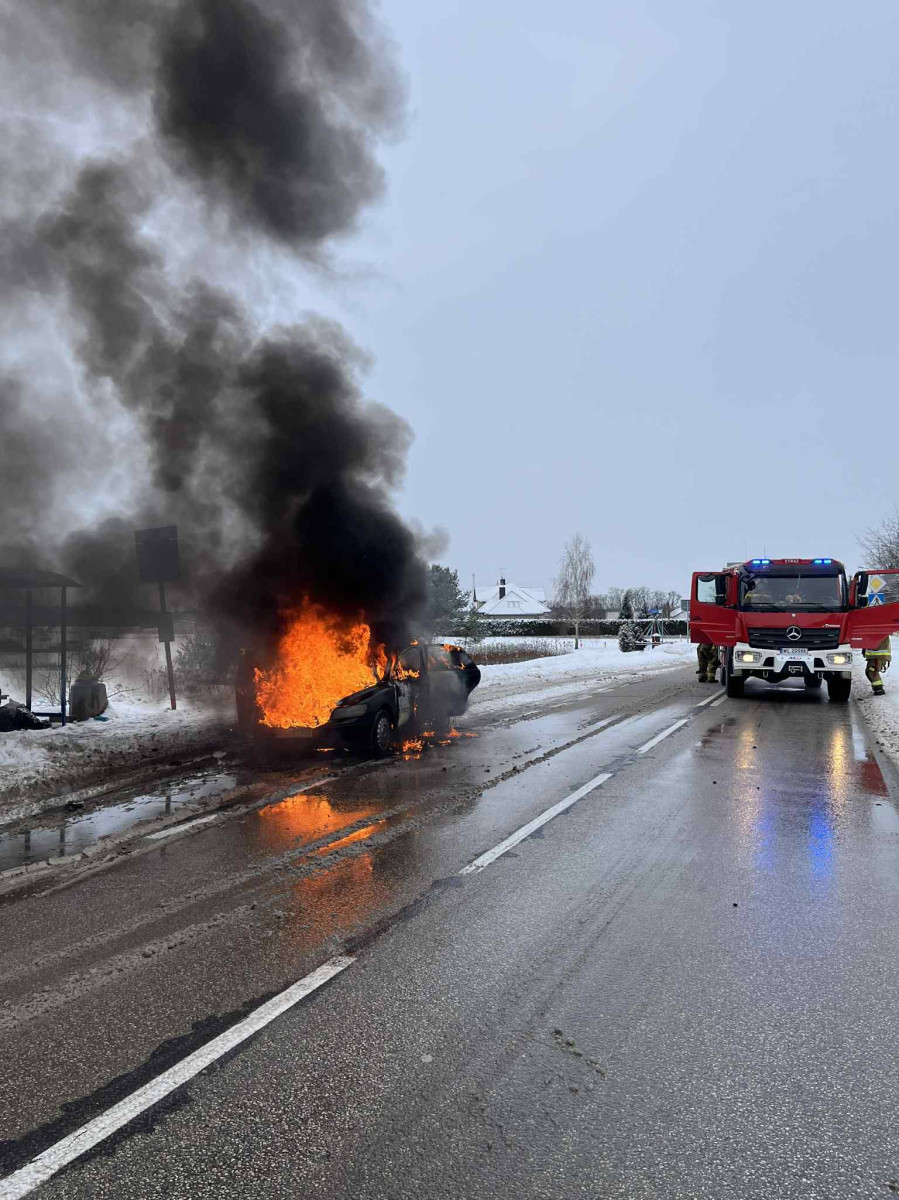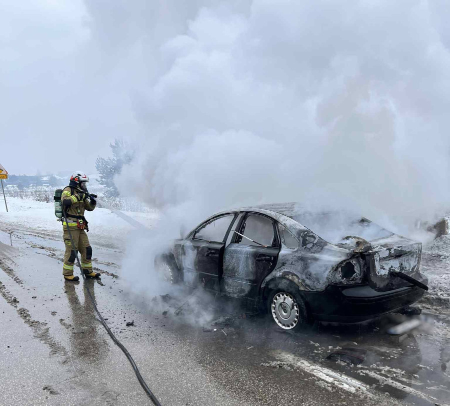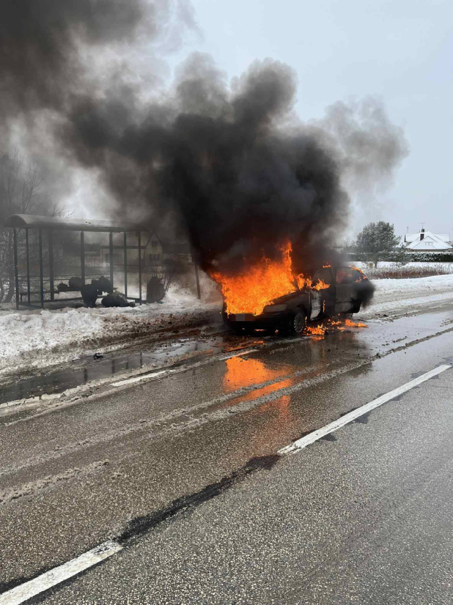 Z relacji straży pożarnej wynika, że ogień pojawił się w trakcie jazdy. Kierujący pojazdem poczuł zapach dymu, zatrzymał samochód w zatoczce autobusowej, a następnie doszło do rozwoju pożaru. W chwili przybycia pierwszych zastępów cały pojazd był już objęty ogniem.