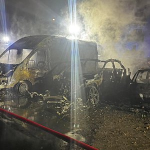 W wyniku zdarzenia całkowicie spłonęły cztery samochody, a jedenaście zostało uszkodzonych.