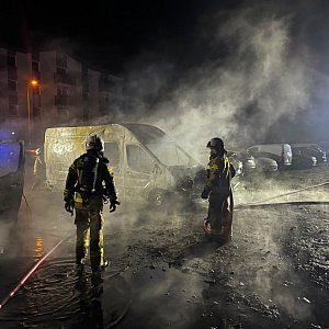 W chwili przyjazdu straży pożarnej ogniem objęte były cztery samochody - mercedes sprinter, ford transit, audii serii “q” oraz opel astra. Działania gaśnicze polegały na podaniu czterech prądów wody na palące się pojazdy oraz w obronie aut zaparkowanych w pobliżu. Dodatkowo, za pomocą piły tarczowej usunięto drzwi do ładowni jednego z samochodów dostawczych. Było to konieczne, aby dogasić jego wnętrze.