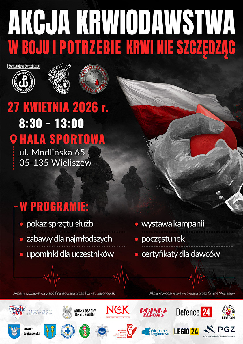 Akcja realizowana jest przy współudziale Batalionu Dowodzenia Wojsk Obrony Terytorialnej, Jednostki Wojskowej Działań Niekonwencjonalnych „GRYF”, Oddziału Klubu HDK Legion w Powiecie Legionowskim, a także Gminy Wieliszew i Starostwa Powiatowego w Legionowie. Organizatorzy zachęcają mieszkańców gminy i okolic do udziału, podkreślając, że każda oddana kropla krwi może pomóc w ratowaniu zdrowia i życia potrzebujących.