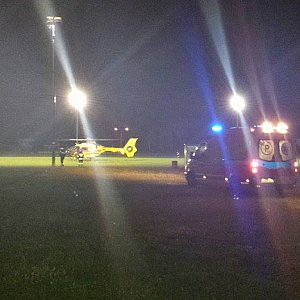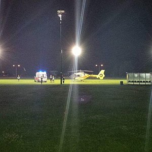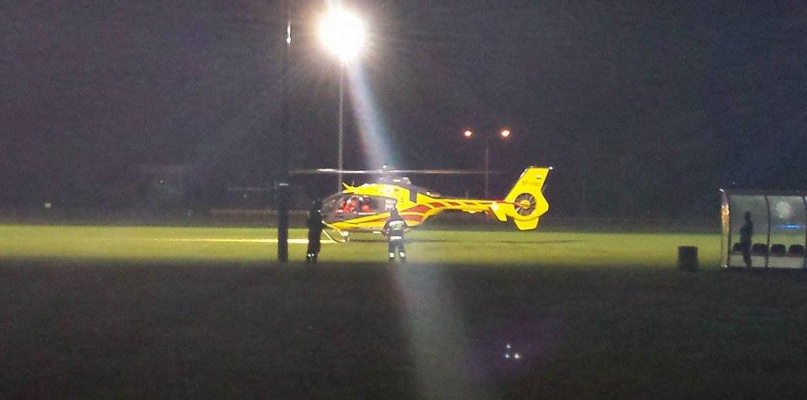 Zadysponowany helikopter lądował na stadionie w Wieliszewie. Chory mężczyzna został przetransportowany drogą powietrzną do szpitala przy ulicy Szaserów w Warszawie.