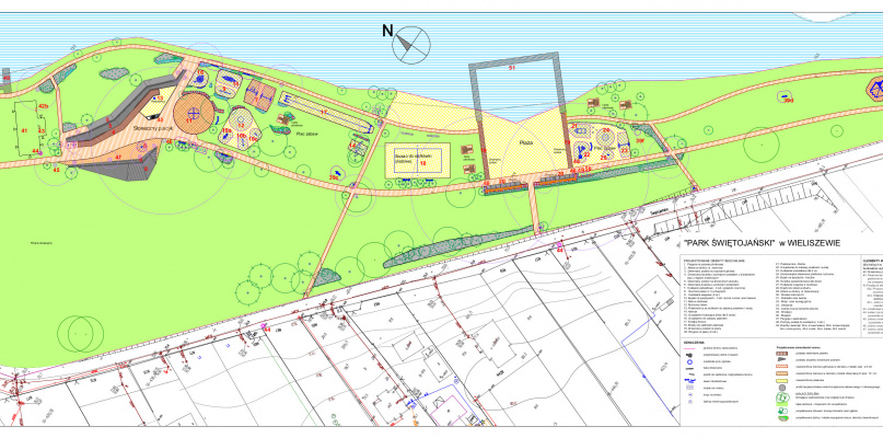 W planach znajdują się także plaże, pomosty, mostki, fontanna i multimedialna kłoda z legendami Wieliszewa.