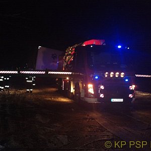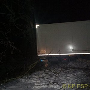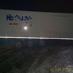 fot. KP PSP LegionowoOkoło godz. 3:30 legionowska Straż Pożarna została powiadomiona o kolizji, do której doszło na drodze wojewódzkiej nr 631, w miejscowości Wólka Radzymińska. Przybyli na miejsce strażacy zastali stojącą w poprzek drogi naczepę TiR-a, sam ciągnik siodłowy znajdował się w rowie. Kierowca nie odniósł obrażeń i w chwili przyjazdu na miejsce służb ratunkowych znajdował się poza pojazdem. Badanie alkomatem wykazało, że był trzeźwy.