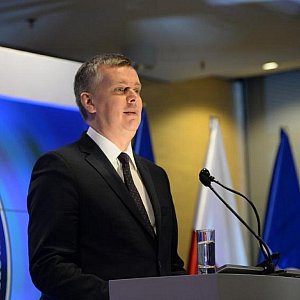 Akt nadania i znak tytułu honorowego "Przodująca Instytucja Wojska Polskiego" minister obrony narodowej Tomasz Siemoniak wręczył Komendantowi Centrum Szkolenia Łączności i Informatyki pułkownikowi Ireneuszowi Furze podczas odprawy kierowniczej kadry MON i SZ, która odbyła się w środę (11.03) w centrum konferencyjnym na Stadionie Narodowym w Warszawie.
