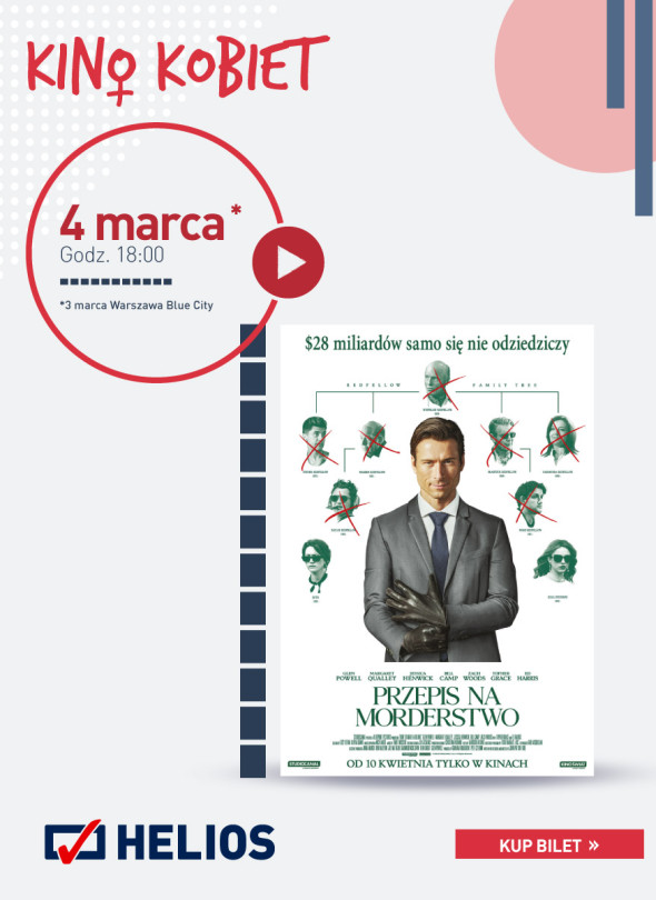Drogie Panie, 4 marca widzimy się na kolejnym pokazie Kina Kobiet z filmem „Przepis na morderstwo”. Wydziedziczony przez swoją bajecznie bogatą rodzinę Becket Redfellow (Glen Powell) postanawia za wszelką cenę odzyskać należną mu fortunę. Jego działania splatają się w morderczo zabawną opowieść, pełną nieprzewidywalnych zwrotów akcji, tworzących perfekcyjnie poprowadzoną rozgrywkę.