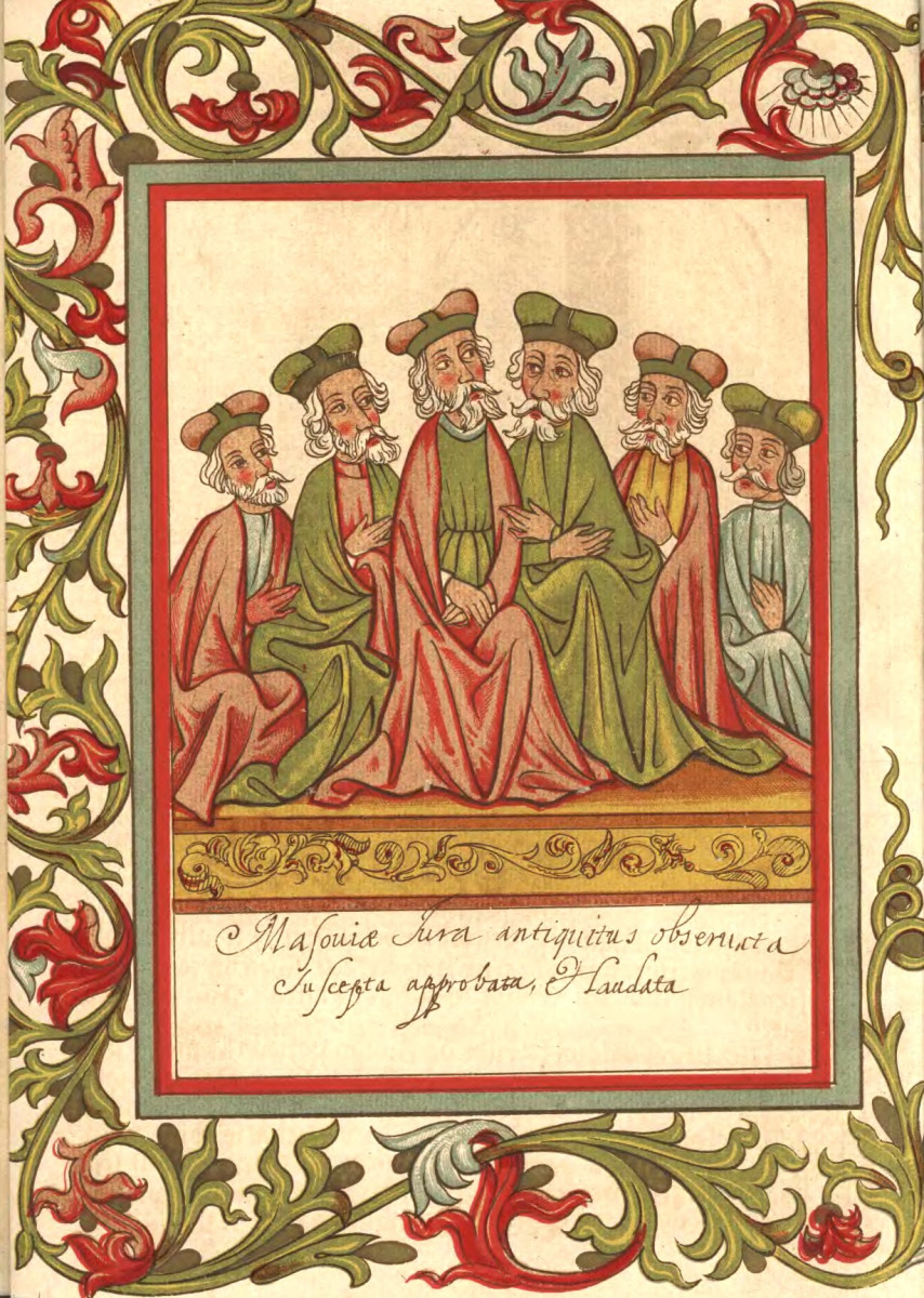 Rycina z „Prawa książąt mazowieckich przełożone na język polski przez Macieja z Rożana r. 1450”, Poznań, 1877, sygn. 33623, domena publiczna