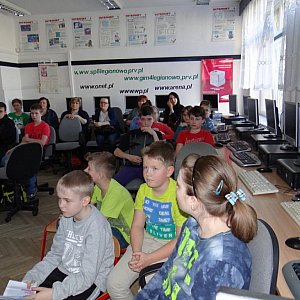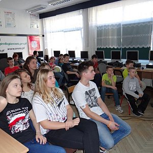 Po krótkim wstępie przygotowanym przez nauczycielki informatyki - p. Agnieszkę Czarkowską i p. Elżbietę Baczewską uczniowie zostali podzieleni na grupy reprezentujące gimnazjum oraz szkołę podstawową i pod kierunkiem uczniów z klasy innowacyjnej 4A szkoły podstawowej i 2B gimnazjum przystąpili do kodowania.
