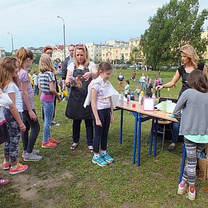 Posiłek był ważny, bo boiska szkolne zamieniły się w areny sportowe. Grali, rzucali, biegali i jeździli prawie wszyscy, bo w zdrowym ciele, zdrowy duch. Atrakcją dnia okazały się zdjęcia w bąbelkach, czyli w bańkach mydlanych, które wytwarzali i mali, i duzi.