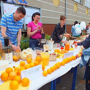 Tego dnia nikt nie był głodny. Na wspólnych stołach pojawiły się owoce, warzywa, sałatki, ciasta, a nawet grillowane kiełbaski. Chętni mogli samodzielnie wyrobić masło i skonsumować je z pysznym wiejskim chlebem. Firma Agmar i klasa II c zadbali o świeżo wyciskane soki, a także pyszne truskawki.