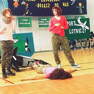 Aby przekonać gimnazjalistów do wyboru kierunków kształcenia w serockiej placówce uczniowie przygotowali bardzo bogaty program artystyczny. Rozpoczął się on pokazem stewardes, następnie uczniowie przedstawili dowcipne scenki ukazujące specyfikę pracy w hotelu, kuchni, w porcie lotniczym oraz w logistyce wojskowej. Aktorzy odegrali swoje role na najwyższym poziomie. Każda scenka nagrodzona była wielkimi brawami.