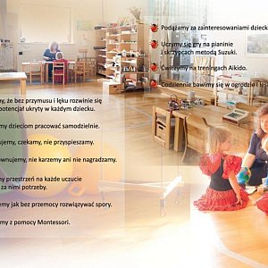 Jesteśmy w bliskim kontakcie z naszymi dziećmi, szanujemy je i staramy się zrozumieć. Inspiruje nas rodzicielstwo bliskości, pedagogika Marii Montessori, książki Jespera Juula, metoda porozumienia bez przemocy i pozytywnej dyscypliny. Tworzymy bazę rozwoju dla naszych dzieci i nas samych, naszą bazę Montessori.