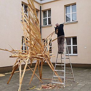 Ponad 3-metrowy Pegaz stanął na dziedzińcu Zespołu Szkół nr 1 w Legionowie. Drewniany pomnik to nagroda dla uczniów za zebranie imponujących ilości makulatury.