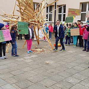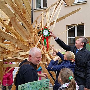 Zrobiony z desek pomnik został ufundowany przez organizację ekologiczną "Klub Gaja" za zdobycie I miejsca w ogólnopolskim konkursie " Zbieraj makulaturę - ratuj konie". Jego oficjalne przekazanie odbyło się w środę (15.04) o godz. 13:00 podczas specjalnej szkolnej uroczystości. Pół godziny później wszyscy wyszli na zewnątrz aby podziwiać nowy szkolny nabytek. Przy okazji odbył się proekologiczny apel, podczas którego młodzież dowiedziała się jak ważna jest ekologia w codziennym życiu.