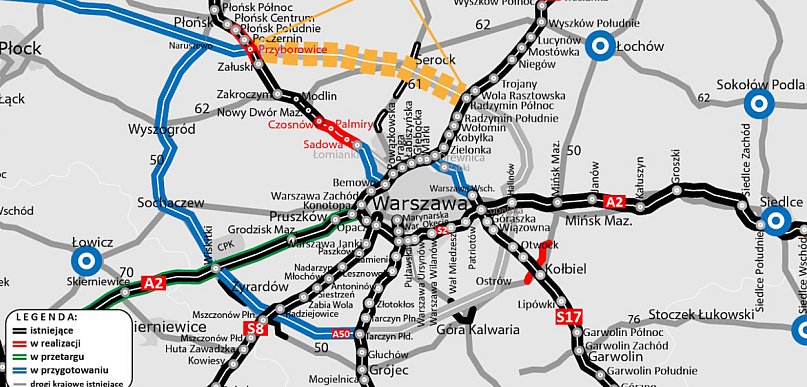 Generalna Dyrekcja Dróg Krajowych i Autostrad otworzyła oferty w przetargu na wykonanie studium techniczno-ekonomiczno-środowiskowego (STEŚ) dla kolejnego odcinka Obwodnicy Aglomeracji Warszawskiej. Chodzi o fragment drogi ekspresowej S50 od trasy S7 (w rejonie węzła Przyborowice) do drogi ekspresowej S8 na północny wschód od Warszawy. Inwestycja ta bezpośrednio dotyczy powiatu legionowskiego – w szczególności mieszkańców gminy Serock, a być może także gminy Nieporęt.
